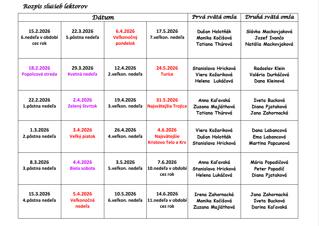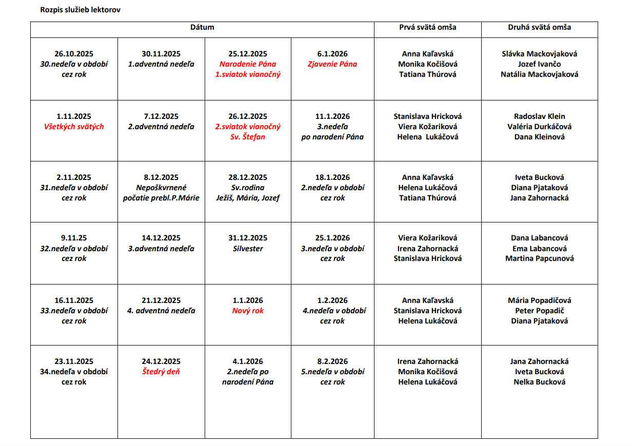 Rozpis služieb lektorov